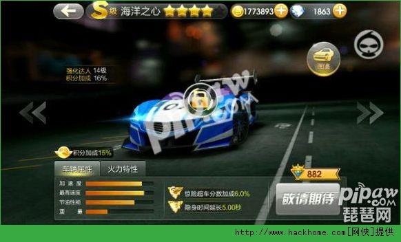 车辆属性:隐身时间延长6秒、惊险超车分数加成5.0%、里程分数加成6.0%