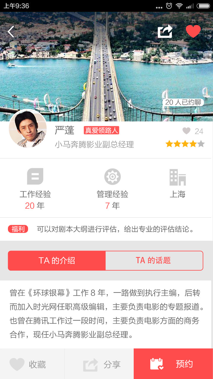 4、领路APP提供了在线预约以及便捷的双向呼叫通话系统,让经验的分享变得随时随地。