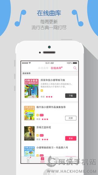 1、弹吧小提琴,小提琴学习神器,找小提琴谱,找小提琴老师,与琴友交流,一手掌握;2、曲谱大全,免费曲谱每周更新,弹吧小提琴提供流行小提琴曲谱,解决传统练琴教材的购买、保管、携带不便的问题,更有独家小提琴曲谱阅读器,帮助用户更快地理解、掌握曲谱;