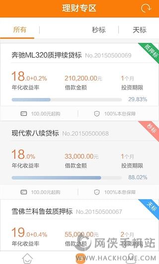 3.专注汽车金融产品,借款周期短,额度低,车辆变现容易,回报高,是大众理财的首选平台。