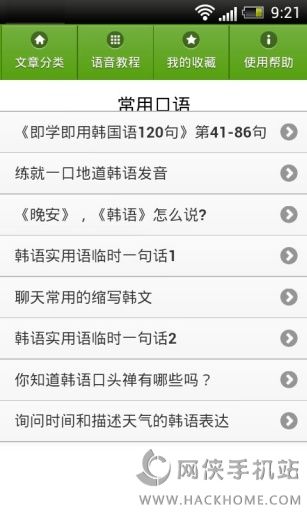3.让你一步一步的了解韩语概况、入门必读知识、韩语语法、常用口语、韩语语音、日常对话、进阶阅读、学习经验等全方位知识。