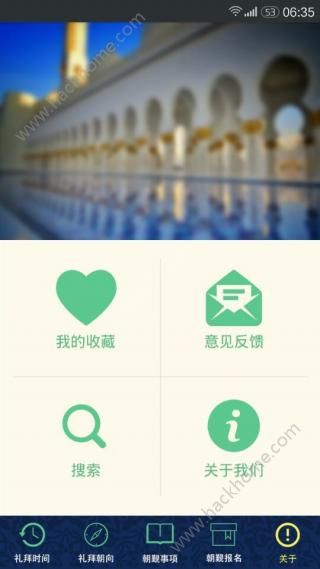3、以手机震动方式提醒穆斯林进行礼拜,附加朝觐事项及朝觐报名栏目,方便穆斯林进行礼拜和朝觐;