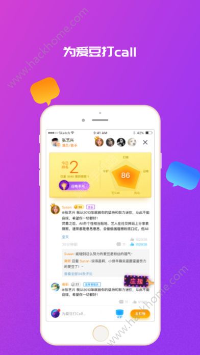 1、【为爱豆霸屏】为了让全世界都知道爱豆有多么优秀,快乐粉丝会增加了丰富的霸屏玩法:粉丝们可以通过守护,召唤,比心,打榜,应援,打call等各种玩法为爱豆霸屏,不仅如此,随着粉丝等级的提升,还可以体验高级玩法,给爱豆养宠物,为爱豆打造家园,做应援公益等更多神秘功能。