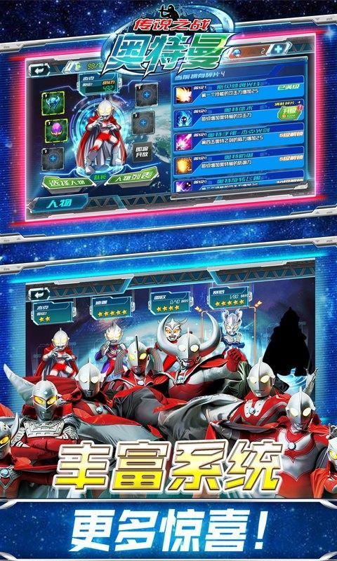 1.玩家将在游戏中化身奥特战士,对抗邪恶的怪兽军团,一起保卫我们的美好地球;2.集结你的奥特战队,迎战嚣张的巨大BOSS,引爆全新的奥特曼格斗热潮;
