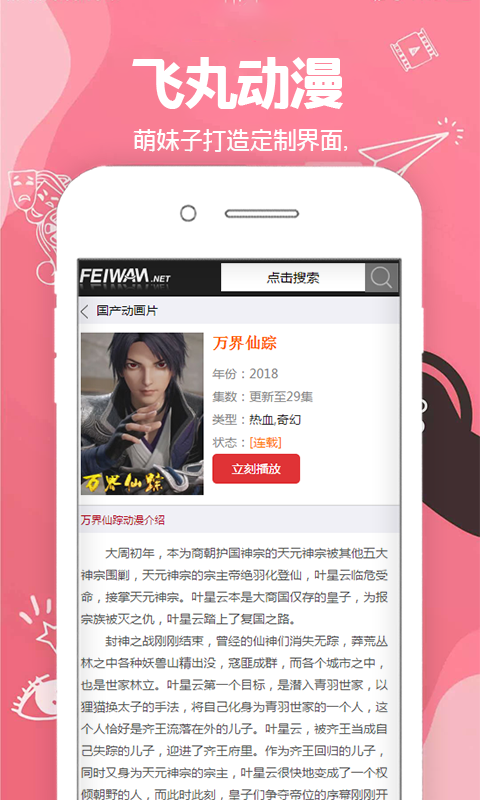 飞丸动漫app是一款提供超多动漫资源的app,各种丰富的动漫资源,让你随时在线观看,热门精彩动漫全都应有尽有,还有很多的新番,精彩的动画更是无穷尽。欢迎大家下载体验哦!