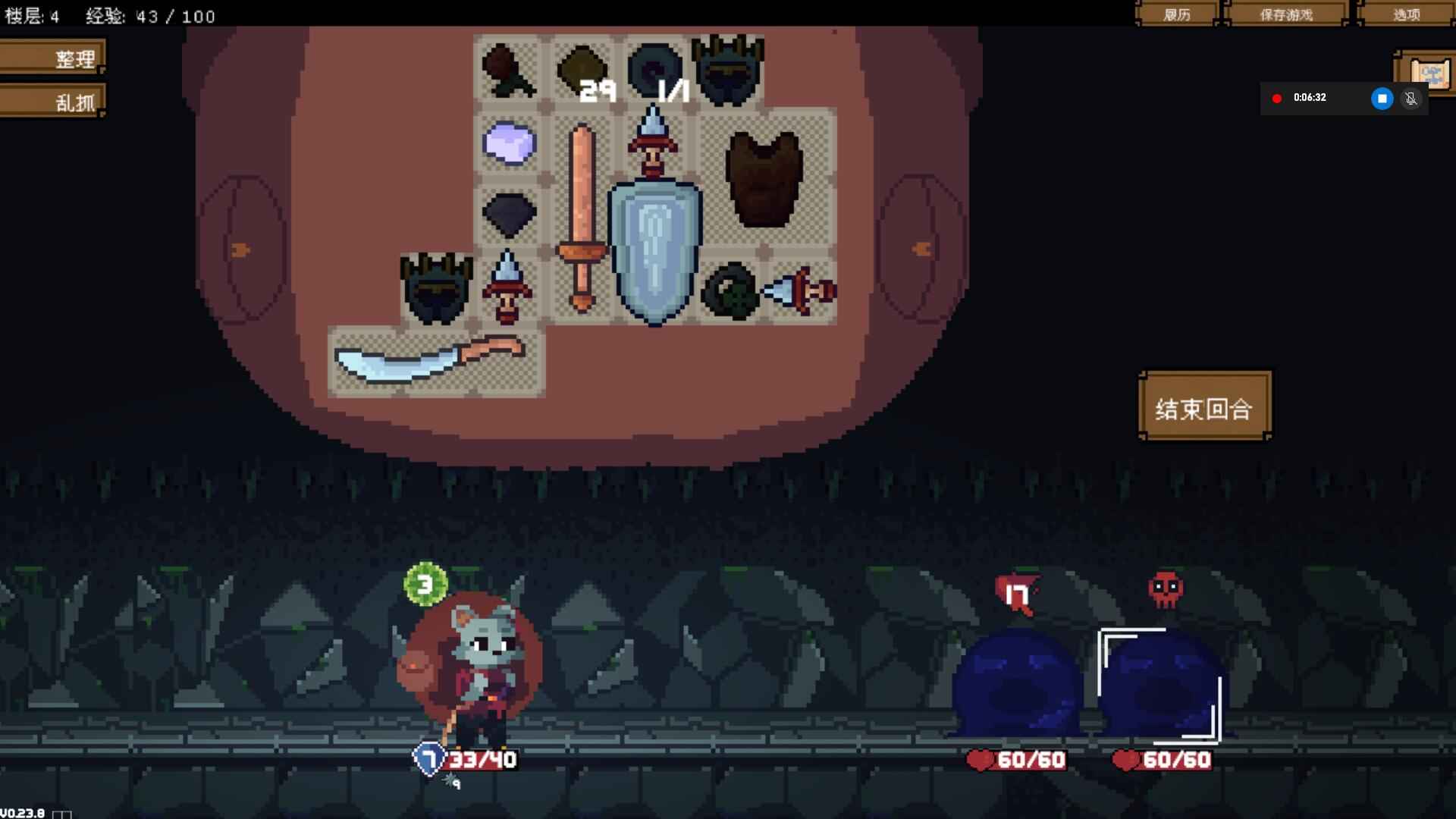 1、玩过,还算不错,可惜内容太少了,该游戏为回合制+肉鸽;2、精力为回合行动次数,武器盾牌会消耗一定精力,还有一些特殊物品;