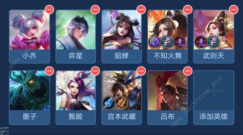 小乔,弈星,貂蝉,不知火舞,武则天,墨子,甄姬,宫本,吕布