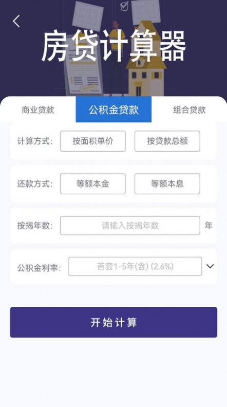 3、多种贷款计算功能,包括等额本息还款、等额本金还款和按月付息到期还本等。